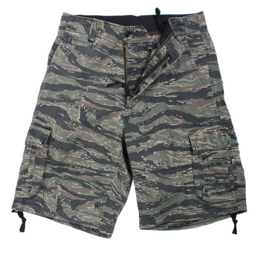Vintage Infantry Tiger Stripe Camo Fatigue Shorts – Retro military style, lightweight comfort, perfect for casual wear and outdoor adventures.